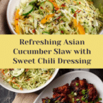 This Asian Cucumber Slaw is a refreshing and crunchy side dish tossed in a tangy sweet chili dressing. Light and flavorful, it’s perfect for pairing with grilled meats or seafood to brighten up any meal.