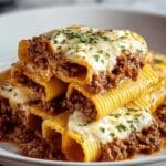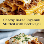 This hearty Baked Rigatoni Stuffed with Beef Ragu & Mozzarella is a comforting Italian-inspired dish featuring rigatoni tubes filled with a rich and flavorful beef ragu, topped with melted mozzarella and Parmesan cheese, then baked to golden perfection. Perfect for a family dinner or special occasion.