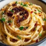 A flavorful and comforting Caramelized Onion Pasta with a spicy homemade chili oil drizzle. Sweet, deeply caramelized onions are combined with al dente pasta and topped with a fragrant chili oil infused with garlic and smoked paprika, optionally garnished with fresh parsley and Parmesan cheese for an extra touch of richness.