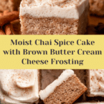 Keywords: chai cake, spiced cake, cream cheese frosting, brown butter, chai milk soak, cinnamon cake, autumn dessert
