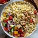 This vibrant Chicken Pasta Salad combines perfectly grilled chicken breast with al dente pasta and crisp, fresh vegetables, all tossed in a creamy, tangy lemon Parmesan dressing. It’s a refreshing and satisfying meal ideal for warm weather or as a delightful lunch or dinner option.