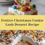This Christmas Cookie Lush Dessert is a festive, no-bake layered treat featuring a crunchy vanilla Oreo crust, a creamy peppermint-infused cream cheese layer, rich cheesecake pudding, and whipped topping garnished with crushed Oreos and holiday sprinkles. Perfect for holiday celebrations, it is easy to assemble and delightfully indulgent.