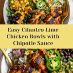 Cilantro Lime Chicken Bowls are a vibrant, flavorful meal perfect for a quick weeknight dinner or a casual gathering. Juicy marinated chicken thighs pair beautifully with fresh avocado salsa, zesty rice, and a smoky chipotle sauce for a satisfying and balanced dish.