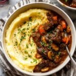 Classic Beef Bourguignon is a rich and hearty French stew made with tender beef chuck, bacon, mushrooms, pearl onions, and carrots, all slowly simmered in a bold red Burgundy wine and beef stock until melt-in-your-mouth delicious. This traditional rustic dish is perfect for a cozy dinner and delivers deep layers of flavor with its slow braising method.