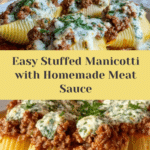 This comforting stuffed manicotti recipe features tender pasta shells filled with a creamy cheese mixture and topped with a savory, easy meat sauce. Perfect for a hearty family dinner, it’s a classic Italian-American favorite that’s both satisfying and simple to prepare.