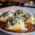 This comforting stuffed manicotti recipe features tender pasta shells filled with a creamy cheese mixture and topped with a savory, easy meat sauce. Perfect for a hearty family dinner, it’s a classic Italian-American favorite that’s both satisfying and simple to prepare.