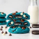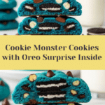 Cookie Monster Cookies are deliciously soft and chewy blue-hued cookies stuffed with a whole Oreo in the center, combining dark and white chocolate chips, crushed mini cookies, and a fun burst of colors. These indulgent treats feature a moist, buttery dough enhanced with the iconic Oreo crunch, making them perfect for cookie lovers and fan favorites alike.
