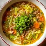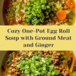 This Cozy One-Pot Egg Roll Soup combines the savory flavors of ground meat, fresh ginger, garlic, and crunchy vegetables in a comforting broth. Perfect for an easy weeknight dinner, this soup delivers the delicious taste of egg rolls without the hassle of frying, all made in one pot for quick cleanup.