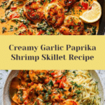 This creamy garlic-paprika shrimp skillet is a flavorful, quick-cooking dish perfect for weeknight dinners. Tender shrimp are seared and then simmered in a rich, aromatic sauce made with garlic, shallots, red bell pepper, tomato paste, paprika, and cream, finished with fresh lemon juice and spinach. Served over rice, orzo, or with crusty bread, this skillet recipe offers a comforting and vibrant meal with bold, smoky, and tangy flavors.