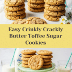 Crinkly Crackly Butter Toffee Sugar Cookies are delightfully buttery and studded with sweet toffee bits, creating a perfect balance of rich flavor and crunchy texture. These cookies feature a satisfyingly tender crumb with a touch of sparkle from a sugar sprinkle on top. They’re easy to make and perfect for any occasion.