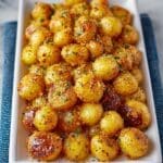 Keywords: parmesan crusted potatoes, crispy baby potatoes, baked baby potatoes, easy side dish, parmesan potatoes, roasted potatoes, vegetarian side