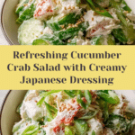 Keywords: Cucumber salad, crab meat salad, Japanese salad, no-cook salad, creamy cucumber salad, imitation crab recipe