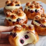 Danish Carnival Buns combine soft, fluffy dough with a creamy vanilla cheesecake center and a sweet blueberry compote topping. These delightful pastries are perfect for a festive breakfast or an indulgent afternoon treat.