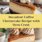 Indulge in this decadent coffee cheesecake—a perfect blend of rich espresso flavor and creamy texture. This elegant dessert combines a crunchy Oreo crust with a smooth coffee-infused filling, topped with luscious chocolate ganache and whipped cream. It’s a sweet slice of bliss for any coffee lover.