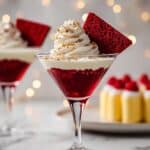 - Garnish: Top the martini with a dollop of whipped cream and sprinkle chocolate shavings or place a small piece of red velvet cake on top for an elegant presentation.