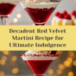 Celebrate in style with this Decadent Red Velvet Martini, a luscious cocktail combining the smooth flavors of vanilla vodka, Irish cream, and chocolate liqueur. Enhanced by a creamy finish and the signature red velvet color, it’s elegantly rimmed with red velvet cake crumbs or red sanding sugar for a festive touch.
