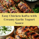 Delicious Chicken Kofta with Garlic Yogurt Sauce is a flavorful and easy-to-make dish perfect for a weeknight dinner or entertaining guests. Juicy spiced chicken patties are grilled to perfection and paired with a refreshing garlic yogurt sauce that adds a bright, creamy touch.
