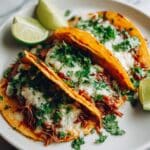 This Easy Birria Tacos recipe features tender slow-cooked chuck roast simmered in a smoky chipotle sauce, then shredded and served in crispy, cheese-filled corn tortillas. Finished with fresh pico de gallo, cilantro, and lime, these tacos deliver a rich, savory, and slightly spicy flavor perfect for satisfying taco cravings.