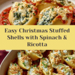 This Easy Christmas Stuffed Shells recipe features jumbo pasta shells filled with a creamy spinach and ricotta cheese mixture, baked to perfection in a savory marinara sauce. Perfect for festive dinners, this dish combines hearty flavors with vibrant spinach, melted cheeses, and a hint of spice for a comforting and elegant meal.