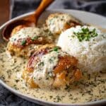 - Serve: Spoon a generous helping of the fluffy cooked rice onto plates. Top with the creamy smothered chicken and plenty of sauce. Garnish with fresh chopped parsley and serve immediately for a warm, comforting meal.