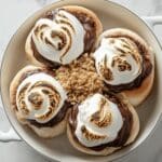 Gooey S’mores Rolls are a delightful twist on a classic campfire treat, perfect for enjoying any time at home. These soft, chocolatey, and buttery rolls topped with toasted meringue capture all the flavors of s’mores in a fun, bake-at-home dessert.