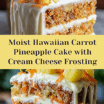 This Hawaiian Carrot Pineapple Cake is a delightful twist on a classic carrot cake, combining tropical pineapple with warm spices for a moist, flavorful dessert. Topped with creamy cream cheese frosting and optional garnishes, it’s perfect for any occasion.