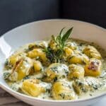 Heavenly Millionaire Gnocchi with Creamy Sauce is a delicious and indulgent dish featuring tender potato gnocchi pan-seared to a golden crisp and tossed in a rich, creamy Parmesan and herb sauce. Ready in just 30 minutes, this comforting recipe combines garlic-infused butter and olive oil with fresh herbs and a touch of red pepper flakes for a perfect balance of flavors and textures.