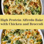 Keywords: high protein pasta bake, chicken alfredo, healthy pasta casserole, high protein dinner, baking chicken pasta, creamy alfredo bake