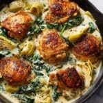 This High-Protein Spinach and Artichoke Chicken Casserole is a creamy, cheesy, and savory baked dish packed with tender chicken, fresh spinach, and artichokes. Perfect for a wholesome family dinner, it combines Greek yogurt and cream cheese for extra protein and a smooth texture, topped with mozzarella and Parmesan for a golden bubbly finish.