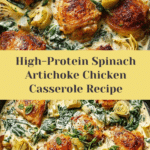 This High-Protein Spinach and Artichoke Chicken Casserole is a creamy, comforting dish packed with flavor and nutrition. Featuring tender chicken, fresh spinach, and tangy artichokes, it combines the best of a classic dip with hearty protein for a satisfying meal.