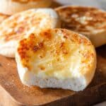 Keywords: English muffins, homemade English muffins, stovetop English muffins, breakfast bread, soft muffins