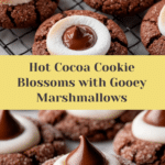 These Hot Cocoa Cookie Blossoms combine rich, chocolatey cookie dough with melty marshmallows and creamy Hershey’s Kisses Hot Cocoa Chocolates for an indulgent treat that captures the warm flavors of a classic hot cocoa in a delightful cookie form. Perfect for cozy winter nights or festive occasions, these cookies offer a soft, fudgy texture with a gooey marshmallow center and a smooth chocolate kiss topping.