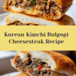 This Korean-Inspired Kimchi Bulgogi Cheesesteak offers a delicious fusion of savory marinated beef, tangy kimchi, and melted cheese all stuffed into a toasted roll. It’s a flavorful twist on the classic cheesesteak that’s perfect for an easy weeknight meal or a satisfying lunch.