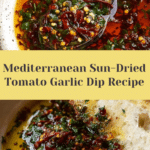 This Mediterranean Sun Dried Tomato Garlic Olive Oil Dip is a flavorful and aromatic appetizer that combines sun-dried tomatoes, garlic, herbs, and parmesan cheese infused with warm olive oil. Perfect for pairing with fresh bread, this savory dip offers a rich and tangy experience with a hint of spice from chili flakes and smoky paprika.