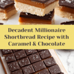 Millionaire Shortbread is a decadent layered dessert featuring a buttery shortbread crust, rich homemade caramel, and a smooth chocolate ganache topping sprinkled with flaky sea salt. Perfectly balanced between sweet and salty, this treat is a classic indulgence that is both elegant and comforting.