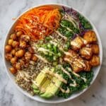This Miso Glazed Sweet Potato Bowl is a vibrant and nourishing meal that combines caramelized sweet potatoes, crispy spiced chickpeas, and fresh vegetables all drizzled with a creamy tahini dressing. It’s perfect for a wholesome lunch or dinner that’s full of bold flavors and textures.