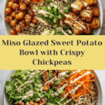 This vibrant Miso Glazed Sweet Potato Bowl combines caramelized sweet potatoes and crispy spiced chickpeas with fluffy quinoa and fresh salad greens. Finished with a creamy tahini dressing, this hearty and nutritious bowl offers a perfect balance of savory, sweet, and tangy flavors, ideal for a wholesome lunch or dinner.