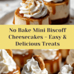 No Bake Mini Biscoff Cheesecakes are a delightful treat combining the rich flavors of creamy cheesecake and spiced Biscoff cookies. These individual-sized desserts are perfect for gatherings or a sweet indulgence any time of day.