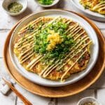 Okonomiyaki is a savory Japanese cabbage pancake that’s both delicious and versatile. Packed with fresh vegetables and flavored with soy and sesame, it’s perfect for a satisfying meal any time of day.