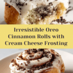 Keywords: Oreo cinnamon rolls, cinnamon roll recipe, cream cheese frosting, breakfast dessert, sweet rolls