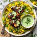 - Serve: Plate a serving of the turmeric jasmine rice, top with the grilled or baked chicken, and drizzle generously with the creamy green sauce. Enjoy this vibrant and flavorful Peruvian-inspired meal!