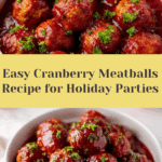 Quick Cranberry Meatballs are a festive and flavorful dish perfect for holiday gatherings. These tender pork meatballs are baked and then simmered in a tangy cranberry sauce that adds a delightful sweetness and brightness to every bite.