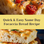 Focaccia is a classic Italian flatbread known for its soft, airy interior and crispy, golden crust. This same-day focaccia recipe is quick and easy, perfect for a flavorful homemade bread topped with herbs and your favorite toppings.
