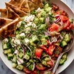 This Simple Turkish Shepherd’s Salad is a fresh, vibrant mix of chopped tomatoes, cucumbers, herbs, and tangy feta cheese, dressed with lemon juice and extra-virgin olive oil. Enhanced with aromatic spices like sumac and Urfa pepper, this salad offers a refreshing and colorful Mediterranean side dish perfect for warm weather meals or light lunches.