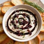 This simple whipped ricotta dip with balsamic and cranberries is a creamy, tangy, and slightly sweet appetizer that’s perfect for any occasion. Its smooth texture pairs beautifully with toasted sourdough baguette slices, making it an effortless crowd-pleaser.