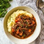 - Serve: Shred the beef in the sauce and serve over your choice of mashed potatoes, mashed cauliflower for a Whole30-friendly option, or gluten-free noodles. Garnish with chopped fresh parsley for a fresh finish.