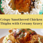 Smothered Chicken Thighs in rich, creamy gravy is a comforting, flavorful dish perfect for any night of the week. With a crispy golden crust and a luscious sauce made from sautéed onions, garlic, and a touch of cream, this recipe promises satisfying, soul-warming results.
