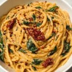 This Spaghetti & Spinach with Sun-Dried Tomato Cream Sauce is a deliciously creamy and flavorful pasta dish that’s simple to make. Combining fresh spinach and tangy sun-dried tomatoes with a rich Parmesan cream sauce, it’s perfect for a quick weeknight dinner or a cozy weekend meal.