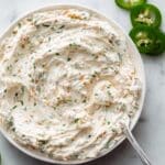 For easiest mixing and best texture, it’s recommended to use softened cream cheese. If it’s cold, allow it to sit at room temperature for about 30 minutes before starting.