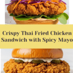 This Thai Fried Chicken Sandwich is a delicious fusion of crispy, flavorful chicken and fresh, spicy toppings. Marinated in coconut milk and curry, then fried to golden perfection, it’s a vibrant twist on a classic favorite perfect for any meal.